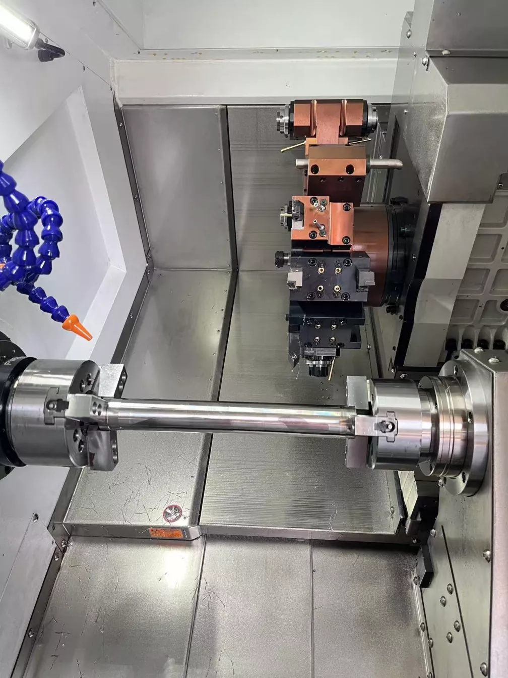 En comparación con los tornos CNC tradicionales, las máquinas de herramientas de CNC de doble tortrina de doble husaje tienen un mayor grado de automatización. Puede lograr el procesamiento automatizado a través de la programación, reducir la intervención manual y los errores, y mejorar la precisión y estabilidad del procesamiento. La torreta se puede instalar en el asiento del riel deslizante con desplazamiento hacia arriba y hacia abajo, izquierda y derecha, para moverse a la posición apropiada de acuerdo con los requisitos de procesamiento. Al mover la torreta, la máquina herramienta puede completar el mecanizado de ambos extremos de la pieza de trabajo, mejorando aún más la flexibilidad de mecanizado.